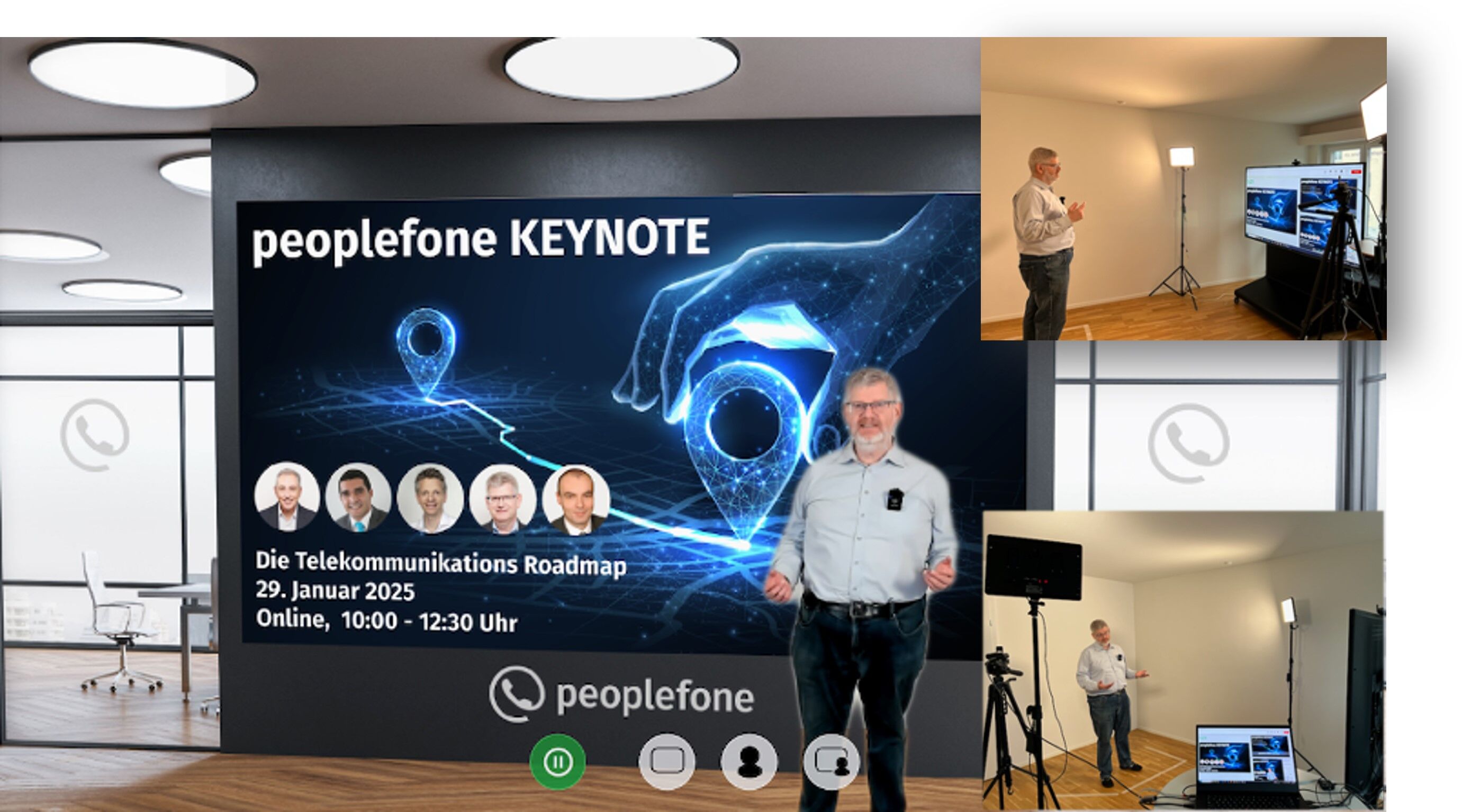 Mit peoplefone STUDIO wird jede Online-Präsentation professionell, lebendig und interaktiv – ganz ohne aufwendiges Setup.