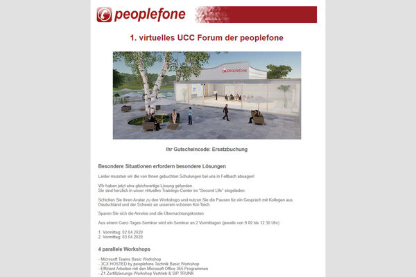 peoplefone Deutschland veranstaltet, zusammen mit der Schweiz und Österreich, ihren ersten Strategie Tag, als Online Messe mit Ausstellern und Workshops.