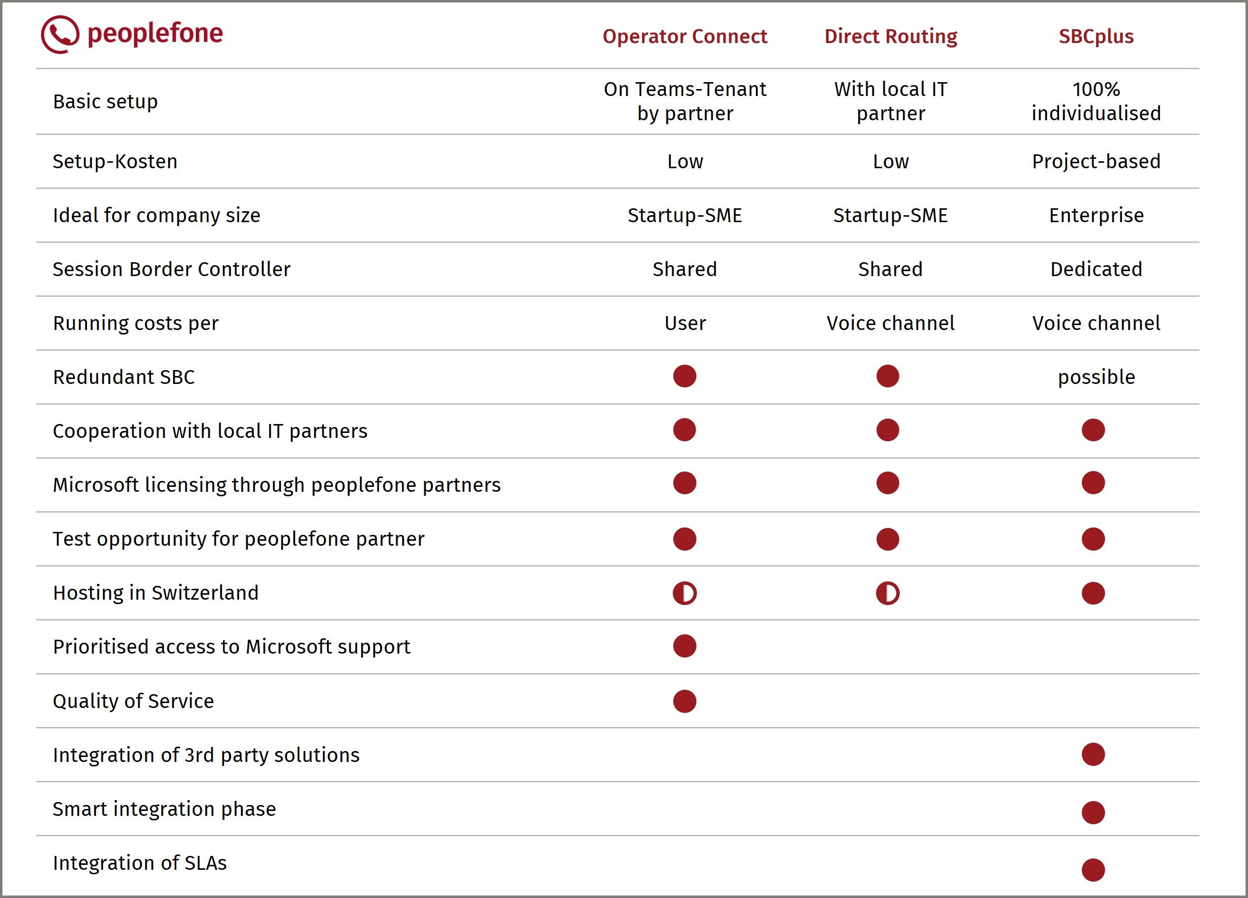 Direct Routing, Operator Connect and SBC plus offer different advantages and are therefore suitable for different companies.