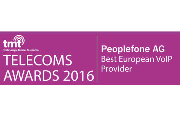 peoplefone's efforts and commitment during the first ten years are recognized in 2016 with the award for "Best European VoIP Provider".