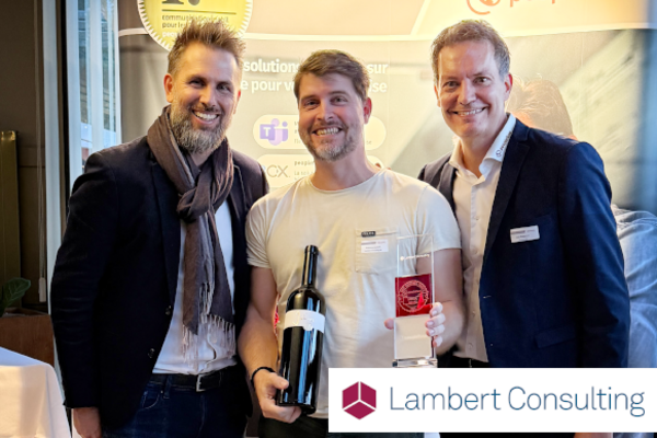 Nous félicitons chaleureusement Guillaume Lambert (à gauche) de Lambert Consulting Sàrl pour cette distinction.