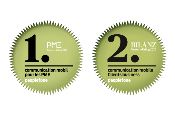 Le magazine PME effectue également chaque année une analyse détaillée auprès des PME de Suisse romande dans le cadre de l'enquête télécom nationale du magazine économique BILANZ. En 2024, peoplefone est sur le podium en tant que meilleur fournisseur de communication mobile pour les PME.