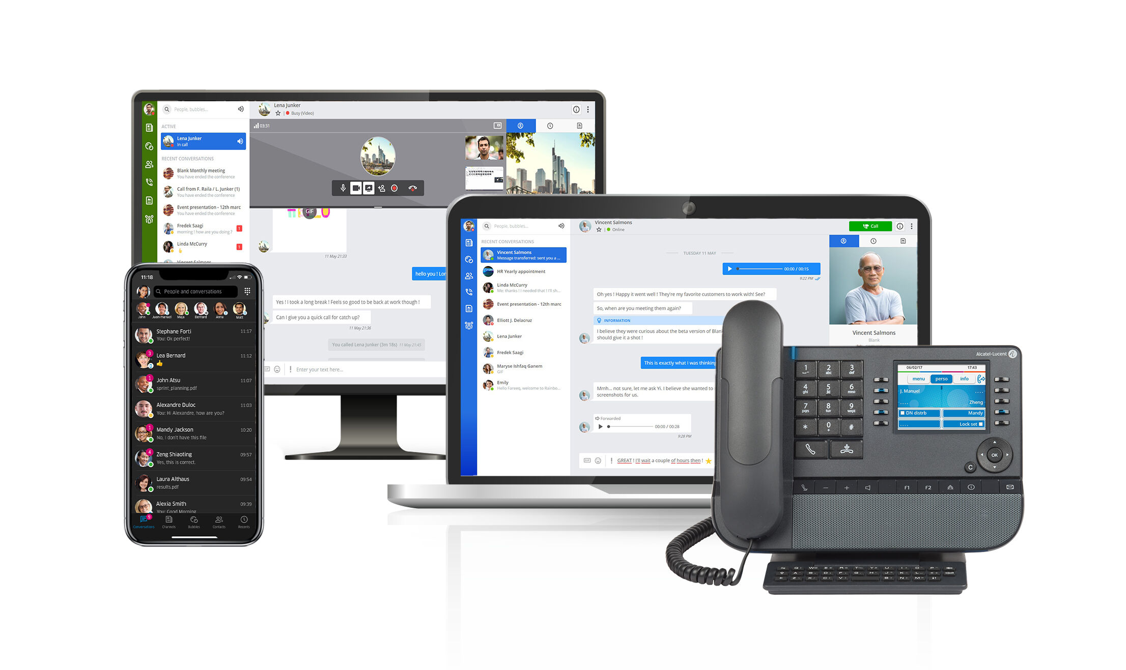 Demandez conseil maintenantRAINBOW HUB est une solution de collaboration ouverte et complète du fabricant tiers Alcatel-Lucent Entreprise. peoplefone est le premier opérateur de téléphonie certifié en Europe avec lequel vous pouvez connecter RAINBOW HUB au réseau téléphonique.